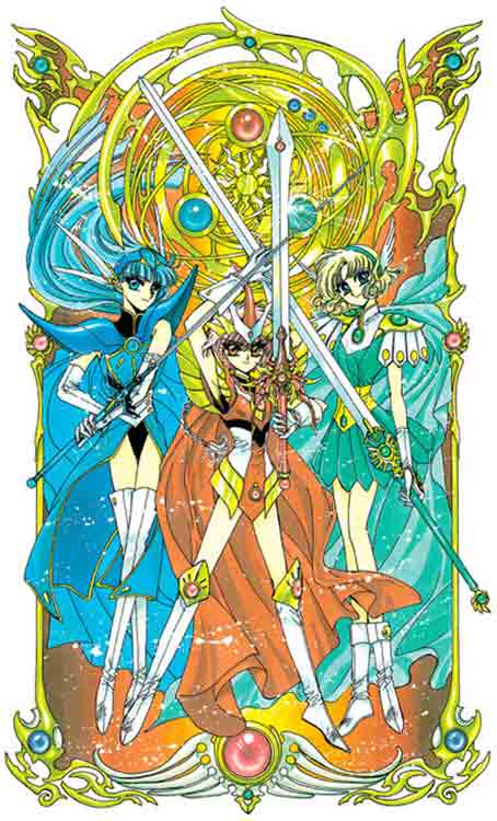 Ilustración de las protagonistas de Magic Knight Rayearth de la mano del equipo CLAMP.